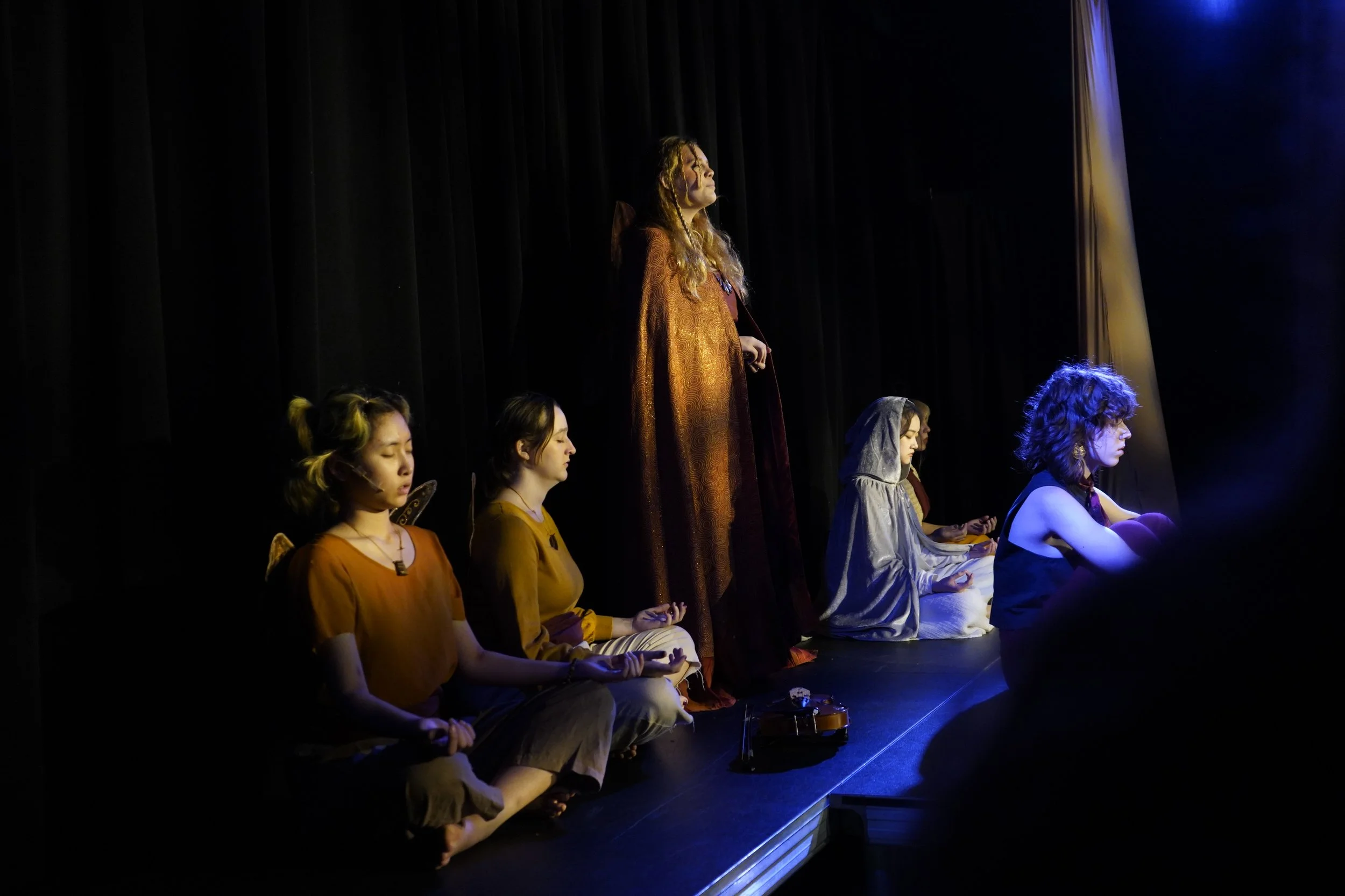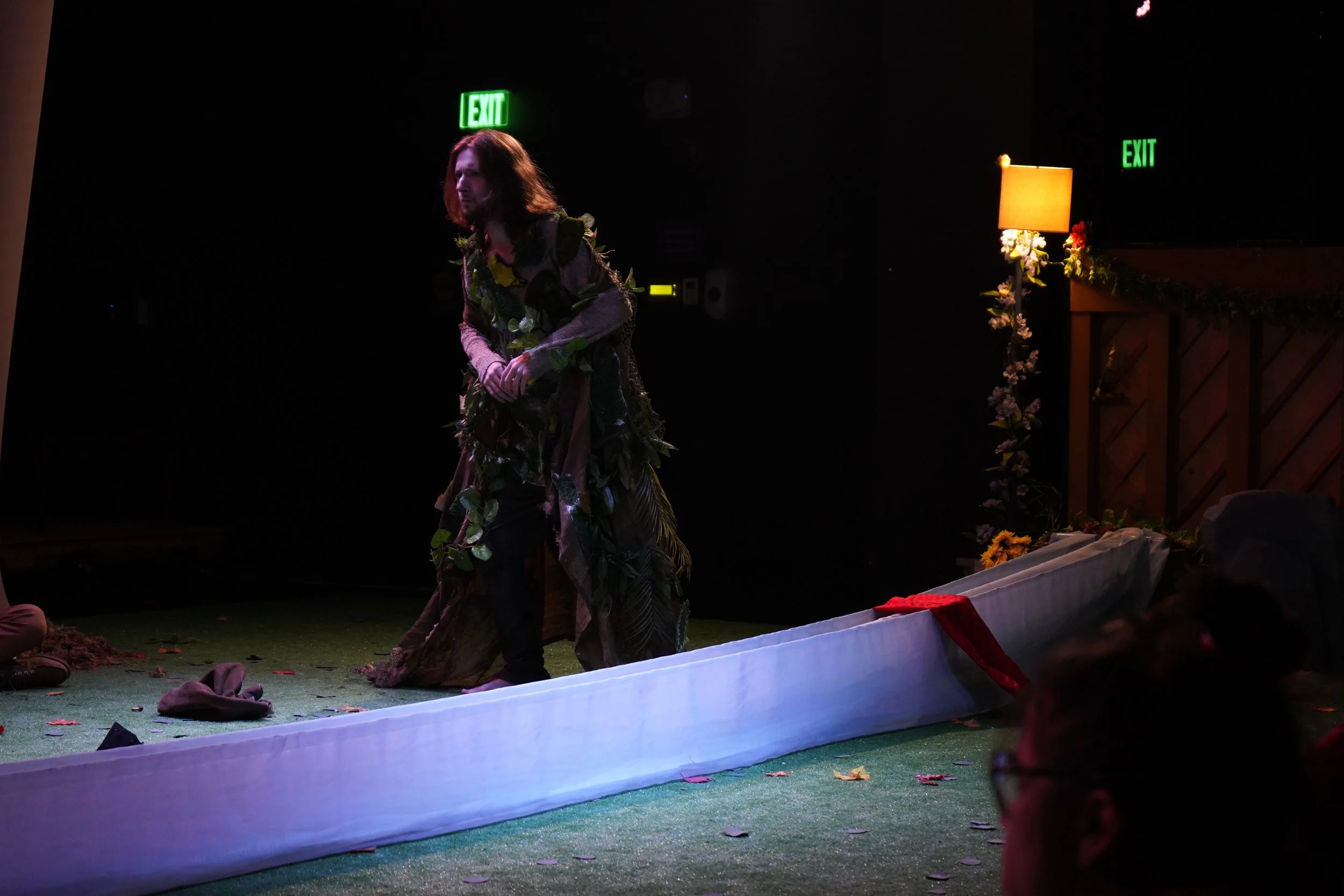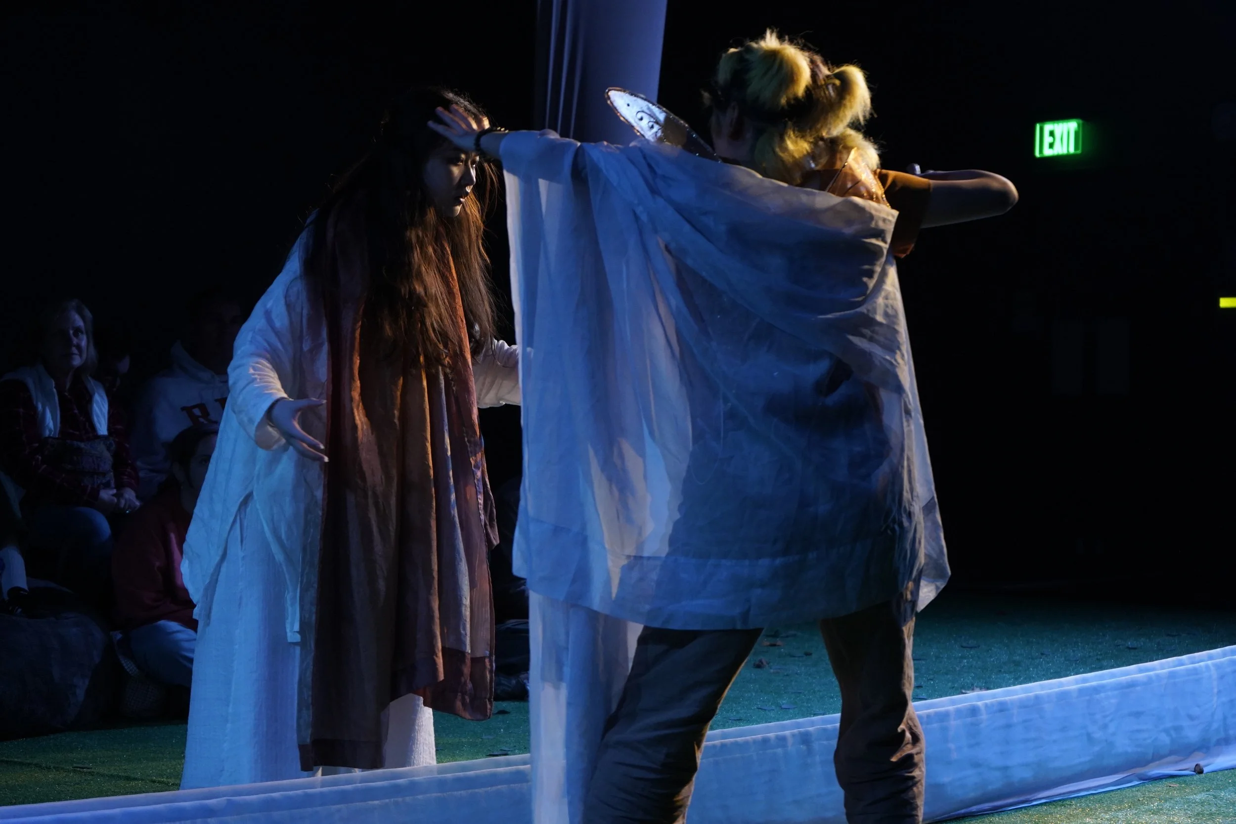 Moksha was design heavy. Focusing on centering the scenic elements that surrounded the audience. I wanted to compliment the set, creating areas that were focused around the beautiful immersive pieces. Since this was a TYA play, I also felt the freedom to use fun and playful colors, and elaborate gobos that made that pointed very obviously to the setting.