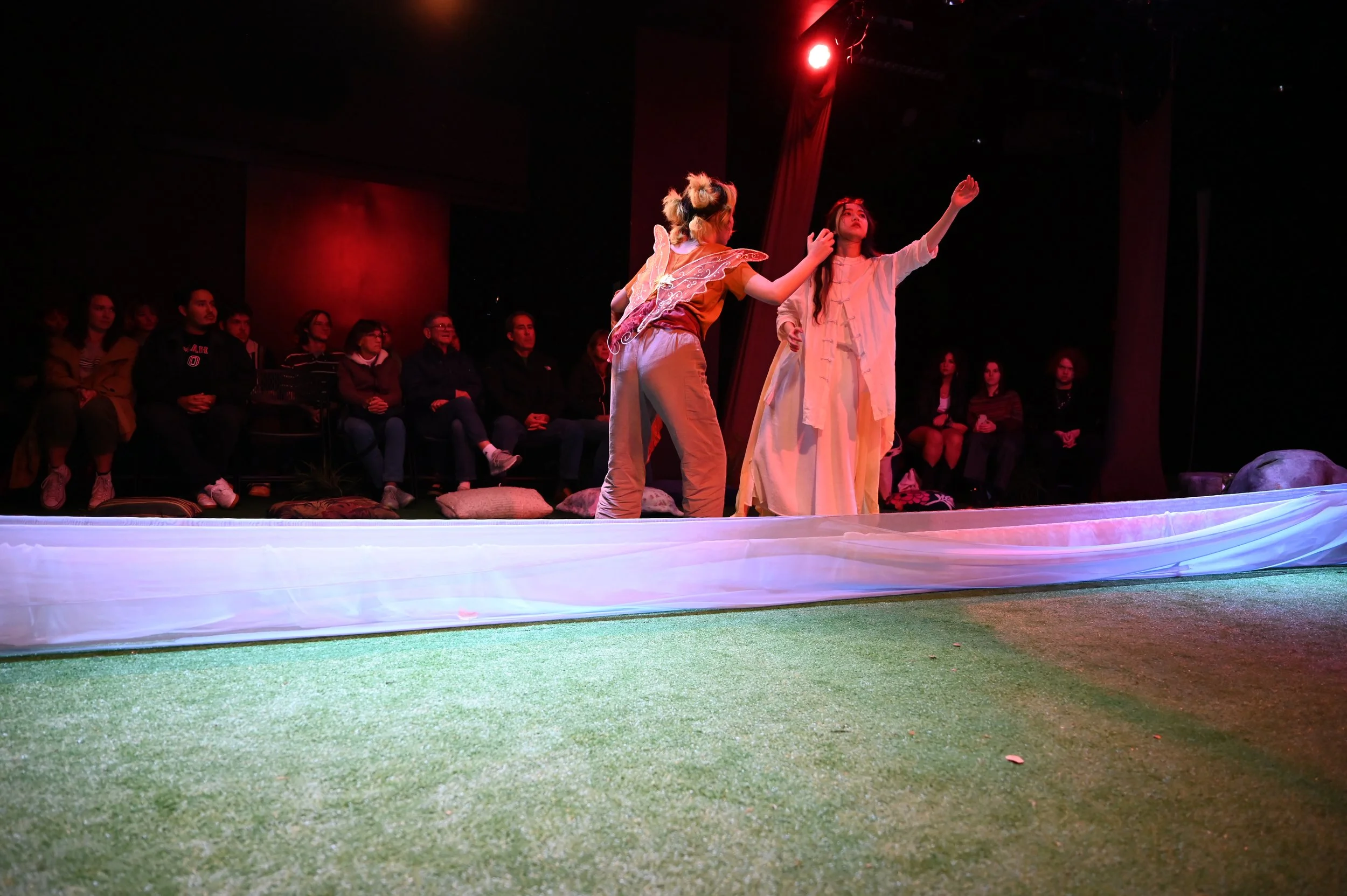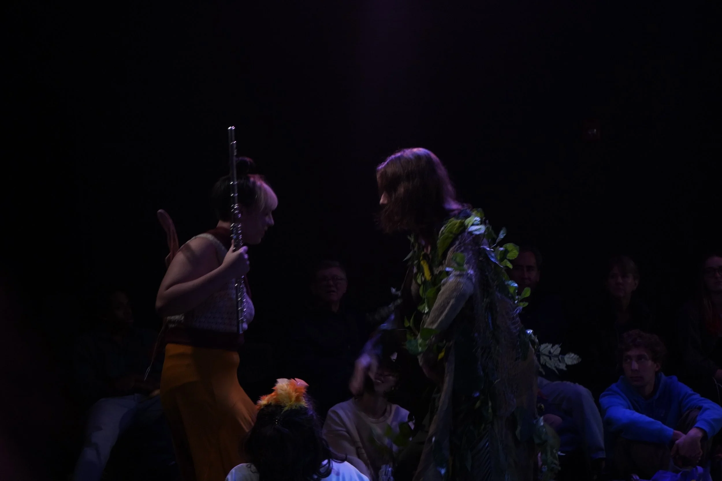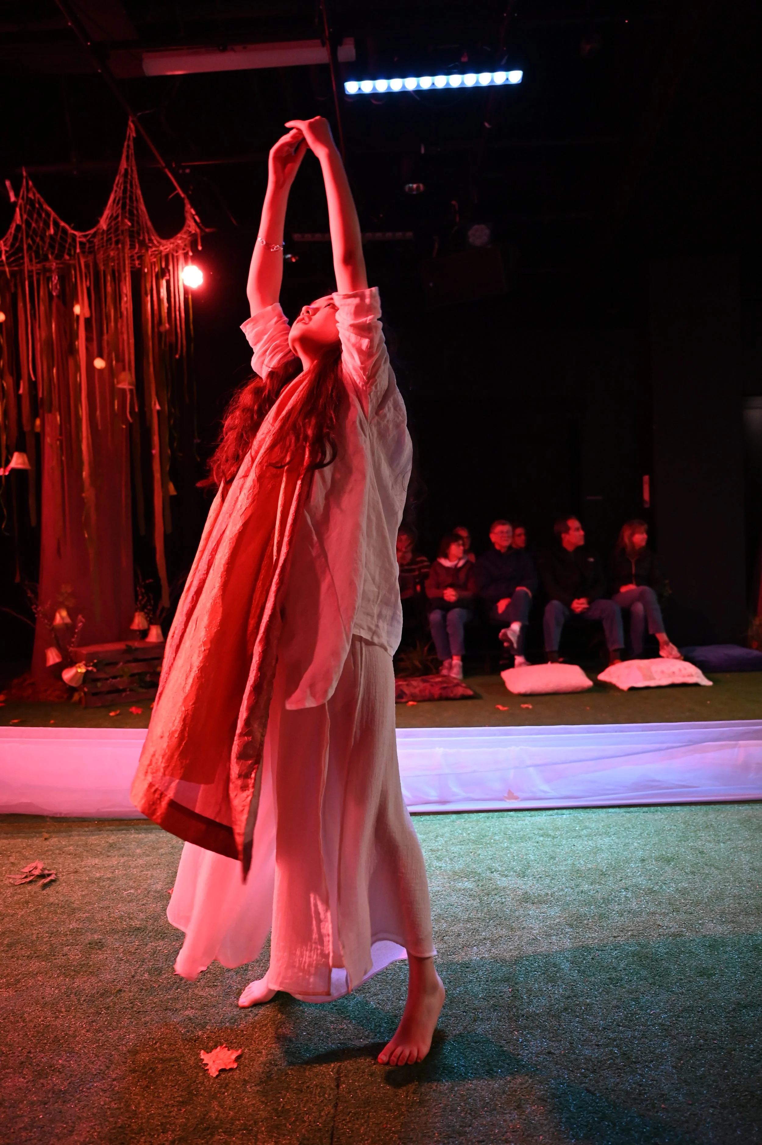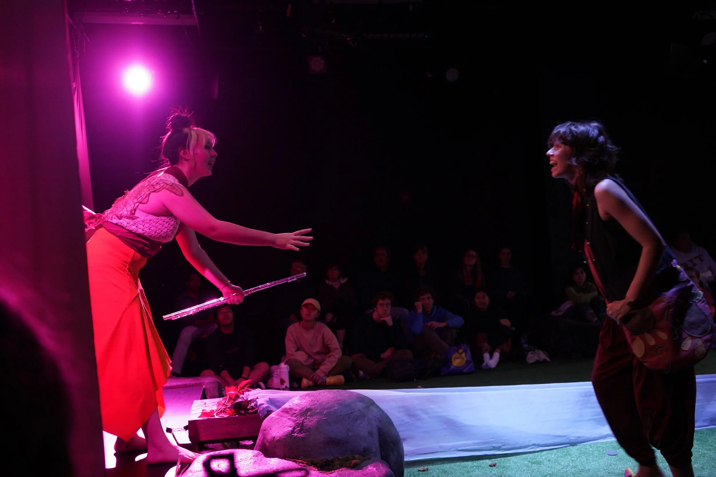 Moksha was design heavy. Focusing on centering the scenic elements that surrounded the audience. I wanted to compliment the set, creating areas that were focused around the beautiful immersive pieces. Since this was a TYA play, I also felt the freedom to use fun and playful colors, and elaborate gobos that made that pointed very obviously to the setting.